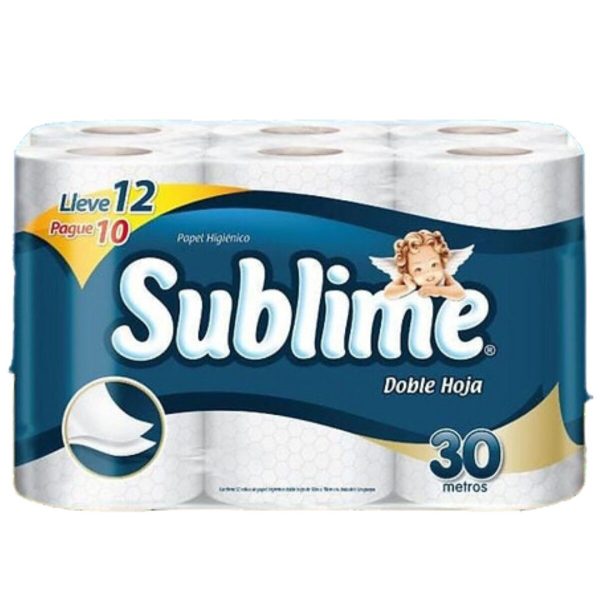 Papel Higiénico Sublime Doble Hoja 30 MT x 12 Rollos Funda X 4